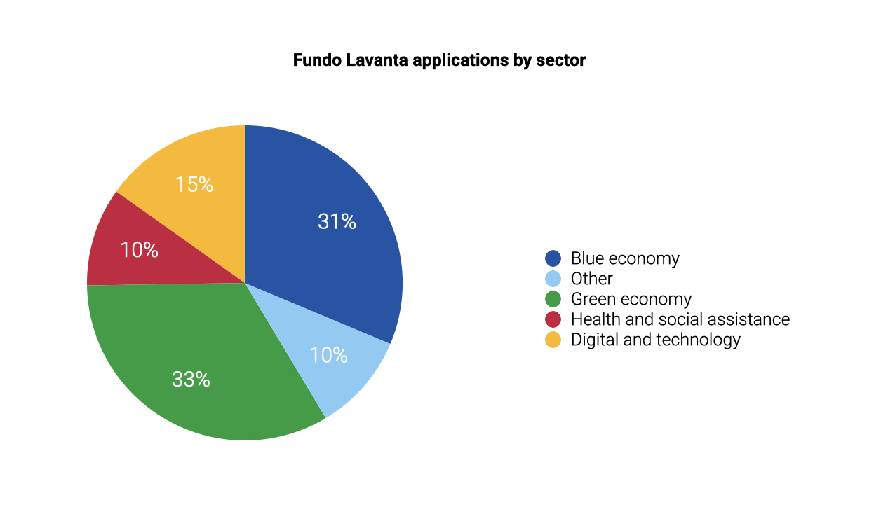 (33%), blue (31%), digital (15%), social and health (10%) and other (10%)