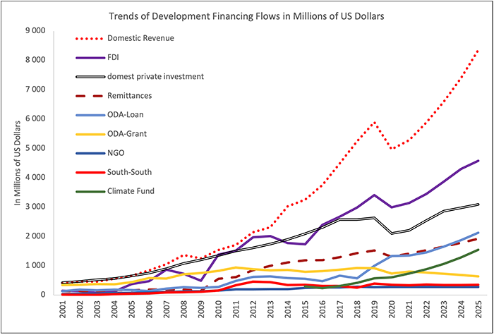 as domestic resources, remittances and Foreign Direct Investment (FDI), are