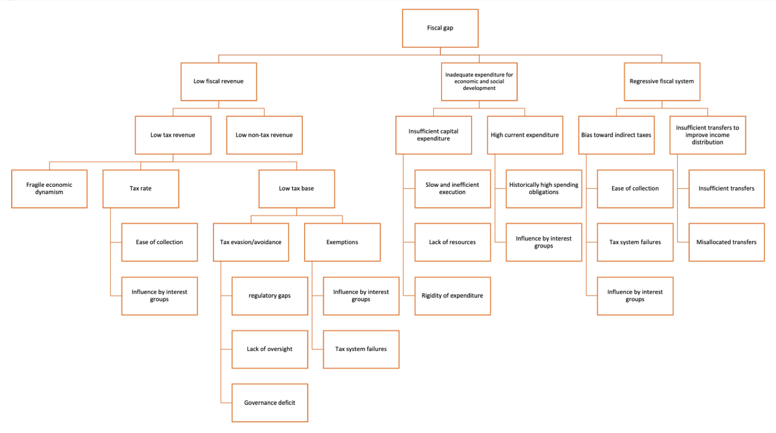 and a regressive fiscal system. The analysis concluded that low tax revenue was