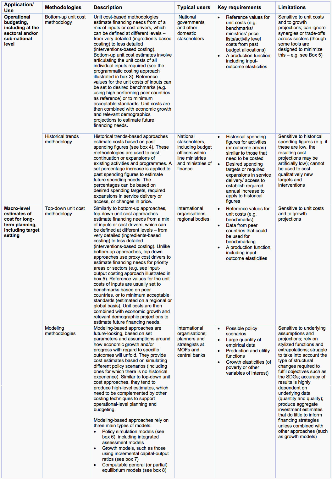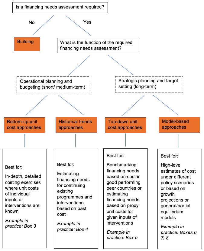 governance and institutions), detailed bottom-up costing approaches may be less