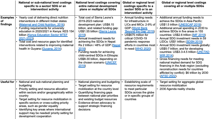 as done in Bangladesh’s SDG financing strategy, costs can be estimated by