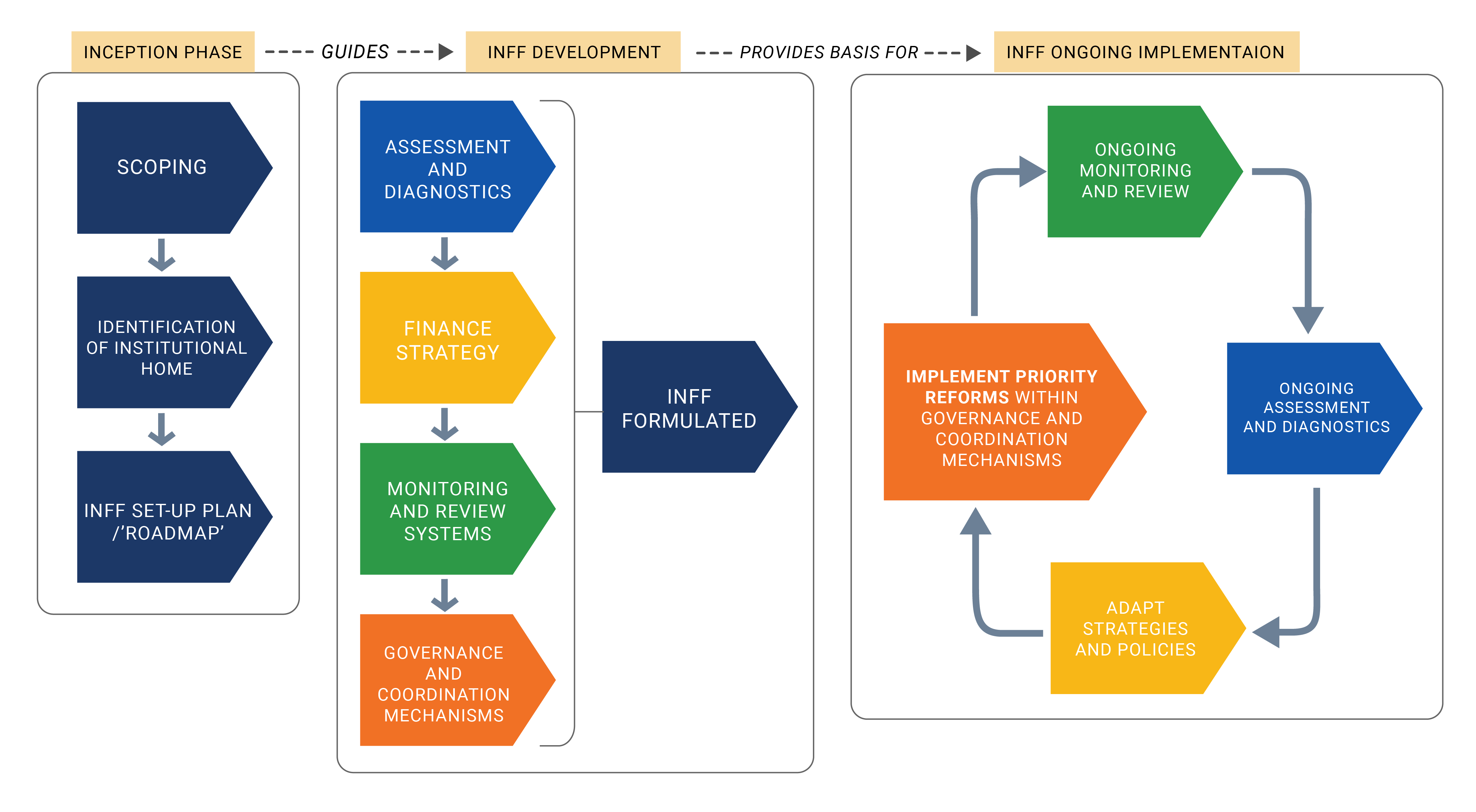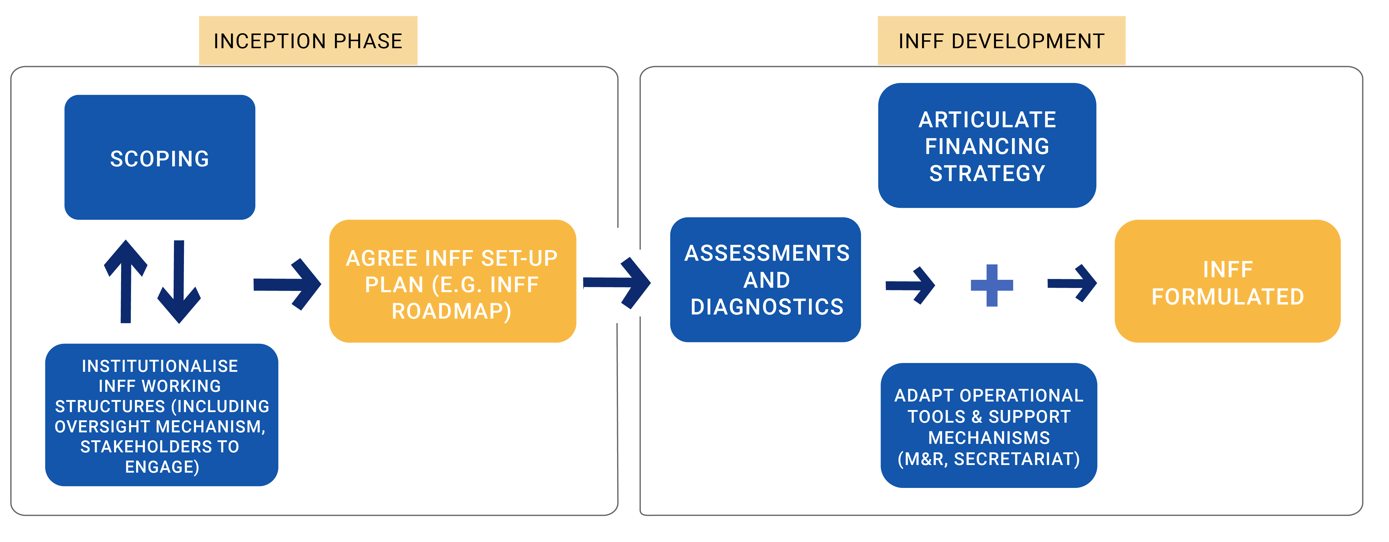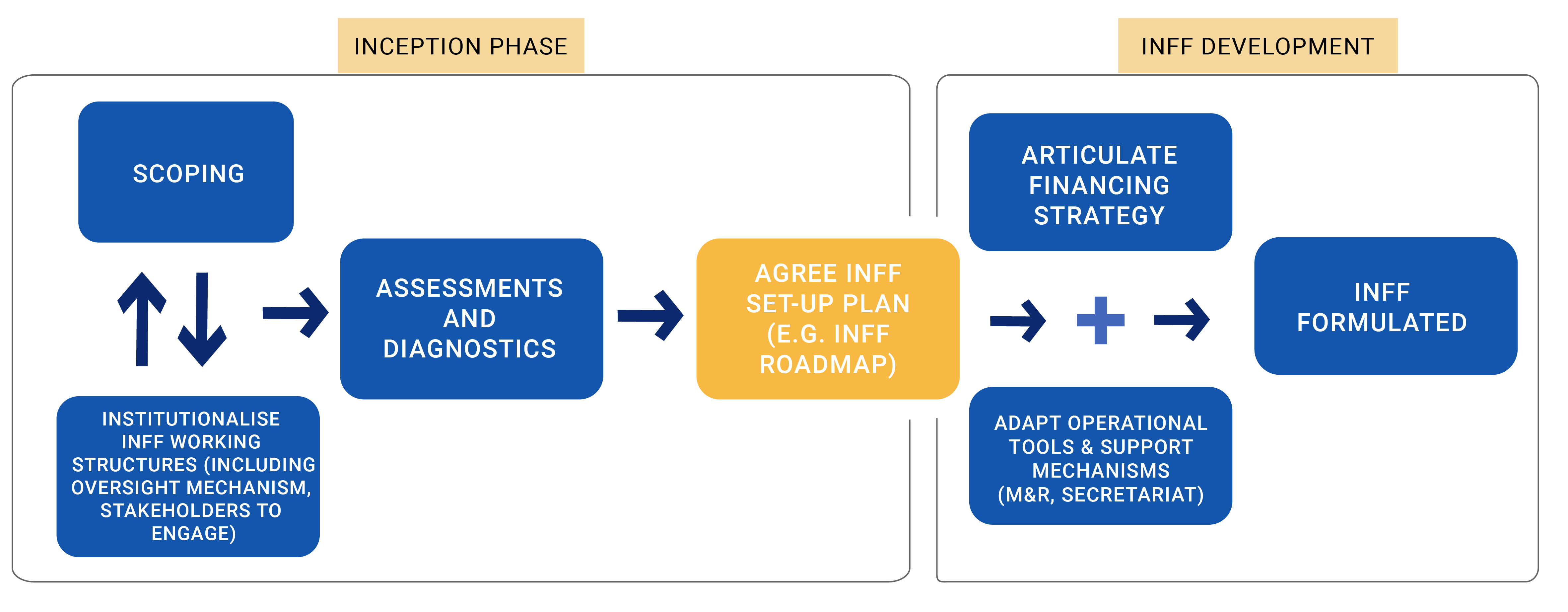 This inception phase guidance is the first in a series of guidance documents that will be published in support of INFF implementation. Others will cover the four INFF building blocks: (i) assessment and diagnostics; (ii) the financing strategy; (iii) monitoring and review; and (iv) governance and coordination. These all build on the 2019 Financing for Sustainable Development Report, particularly Chapter II on INFFsFN .